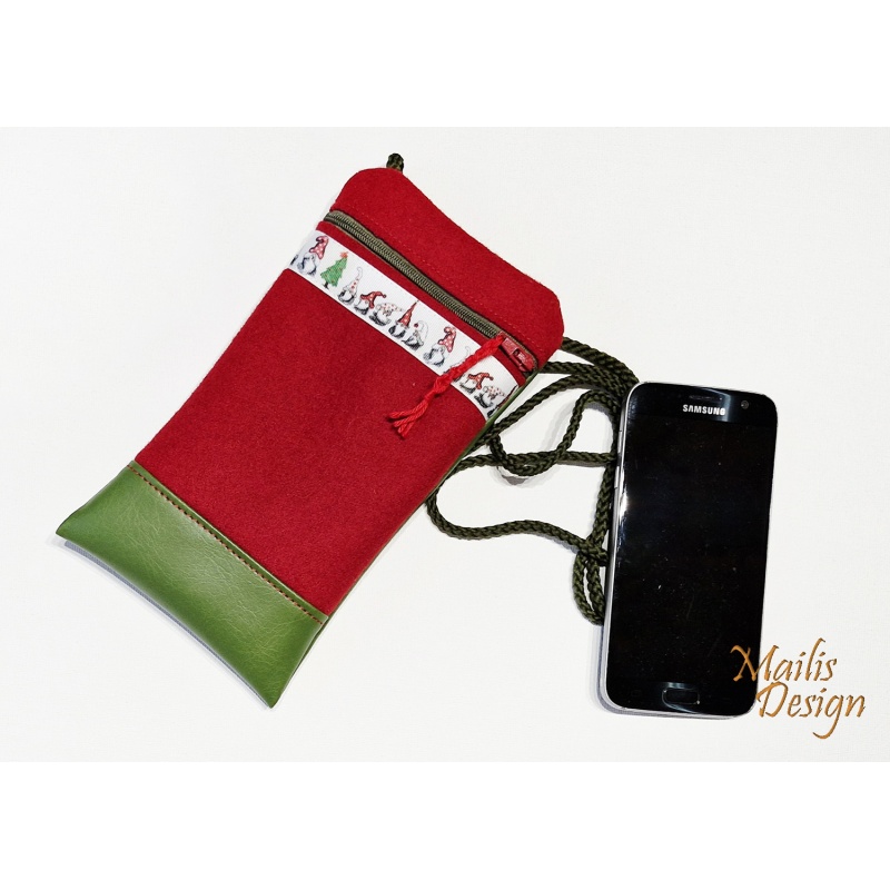 Jõuluteemaline mobiili kott, punane-roheline.