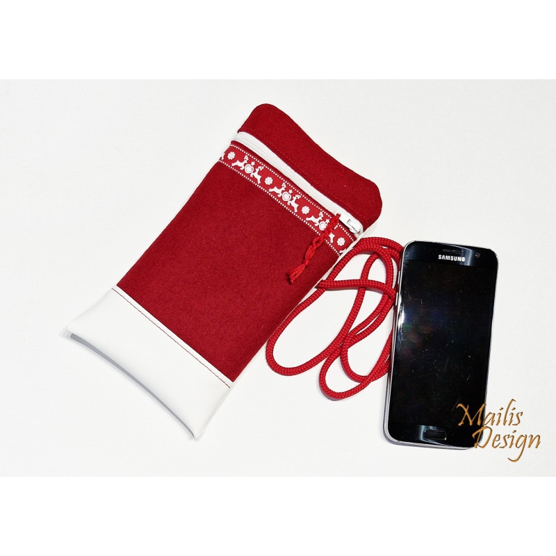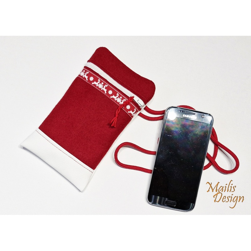 Jõuluteemaline mobiili kott, punane+valge kitsekestega.