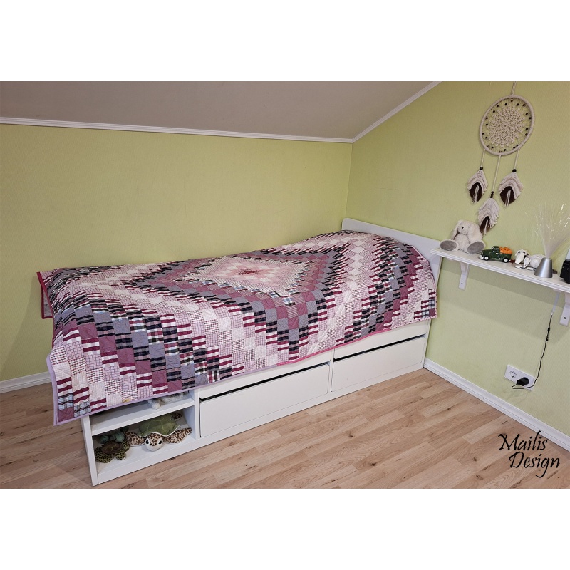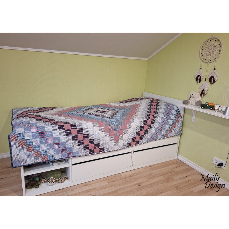 Kahest kupongist saab õmmelda tekikoti näiteks suuruses 100 x 130 cm tekile. Ühest kupongist saab õmmelda 2 padjapüüri suuruses 50 x 60 cm.