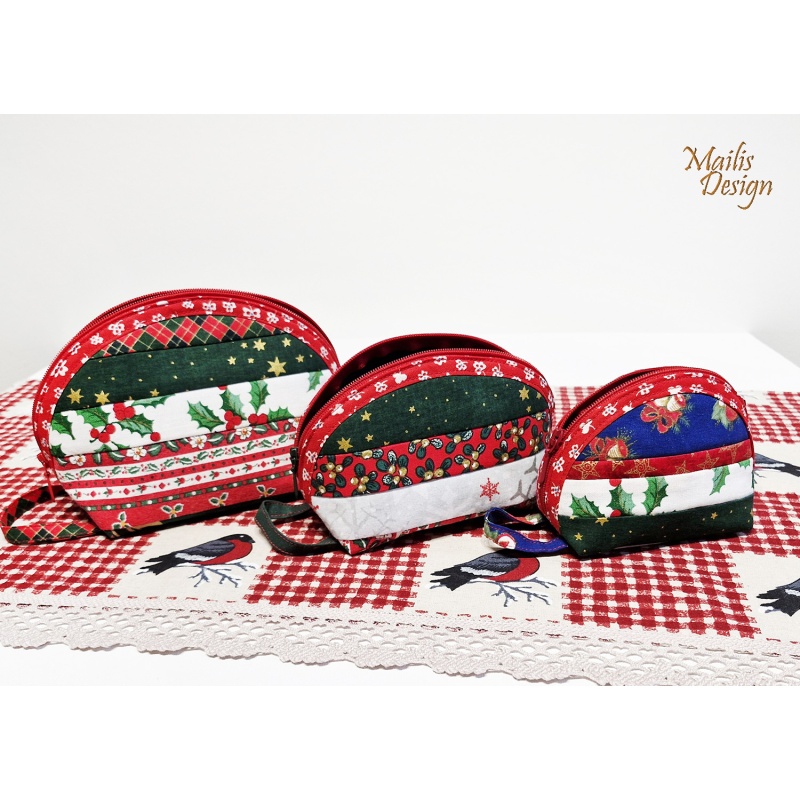 Kotid on õmmeldud jõulumustrites kangastest, taaskasutusmaterjalidest. Kõik kotid on erinevad.