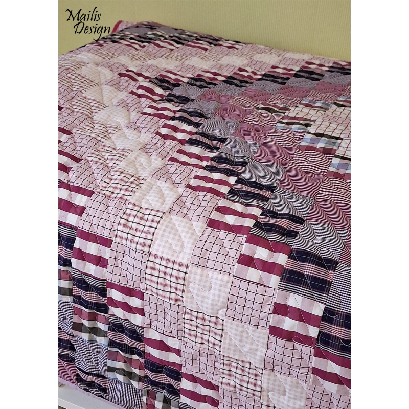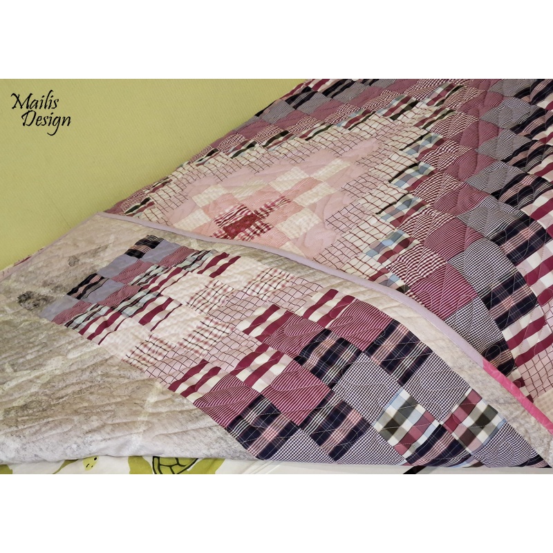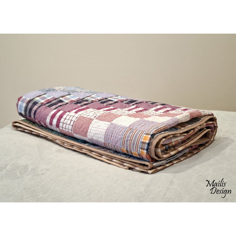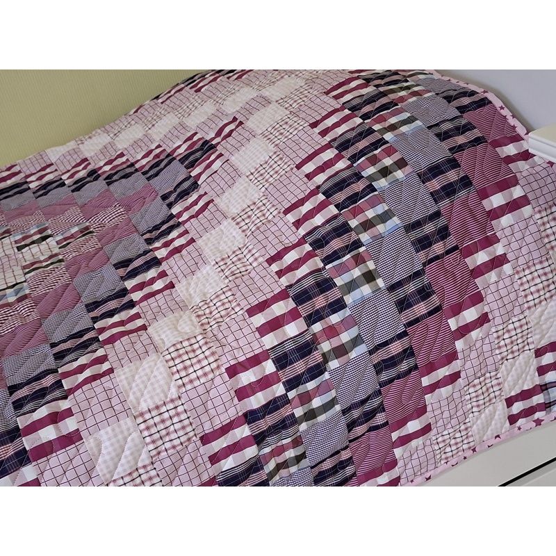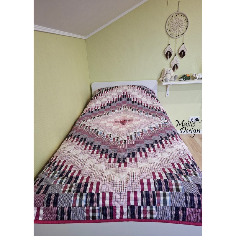Materjal: puuvillased kangad, krõbisevad materjalid detailide sees, erineva tekstuuriga kangad. Kangad on läbi pestud. Rohked tepingud hoiavad teki ka peale pesu vormis. Täiteks mahuline vatiin (polüester).