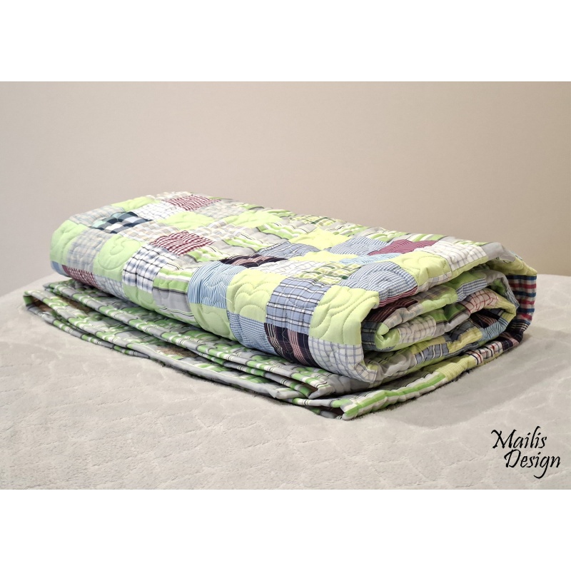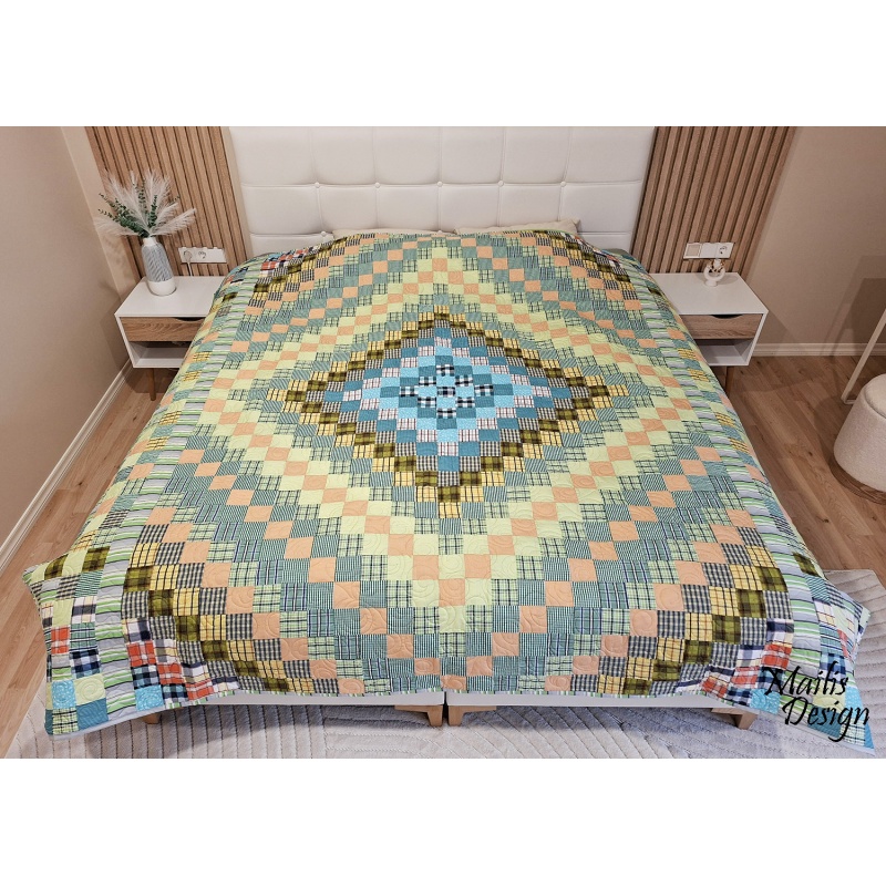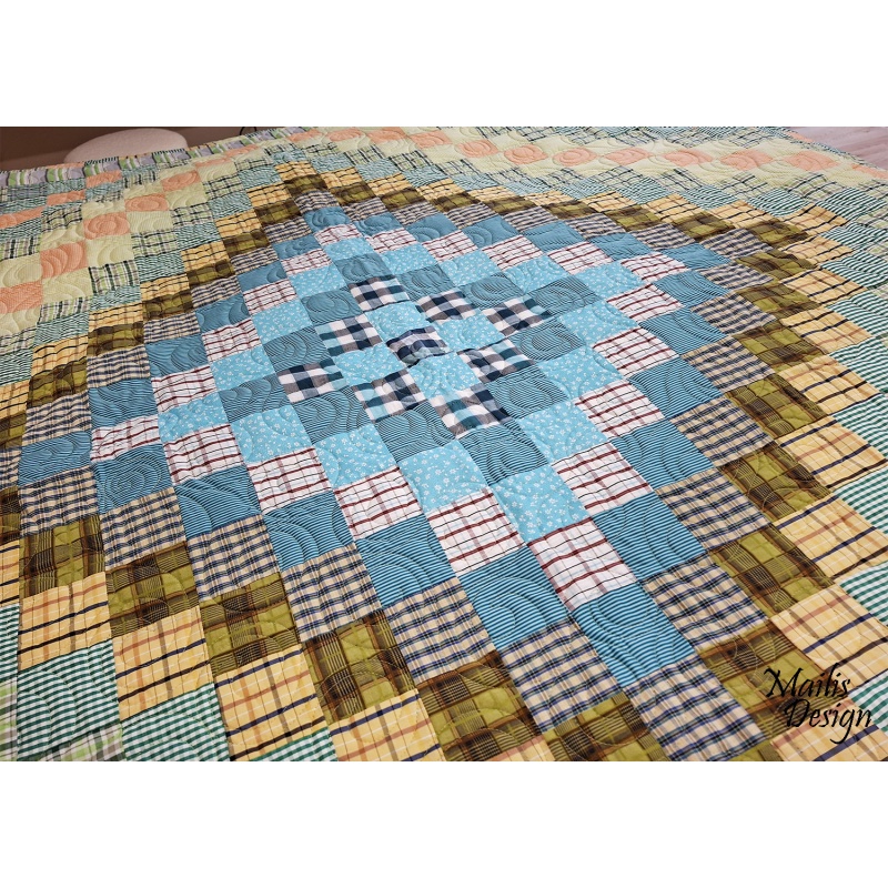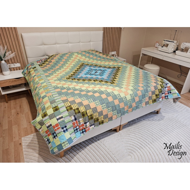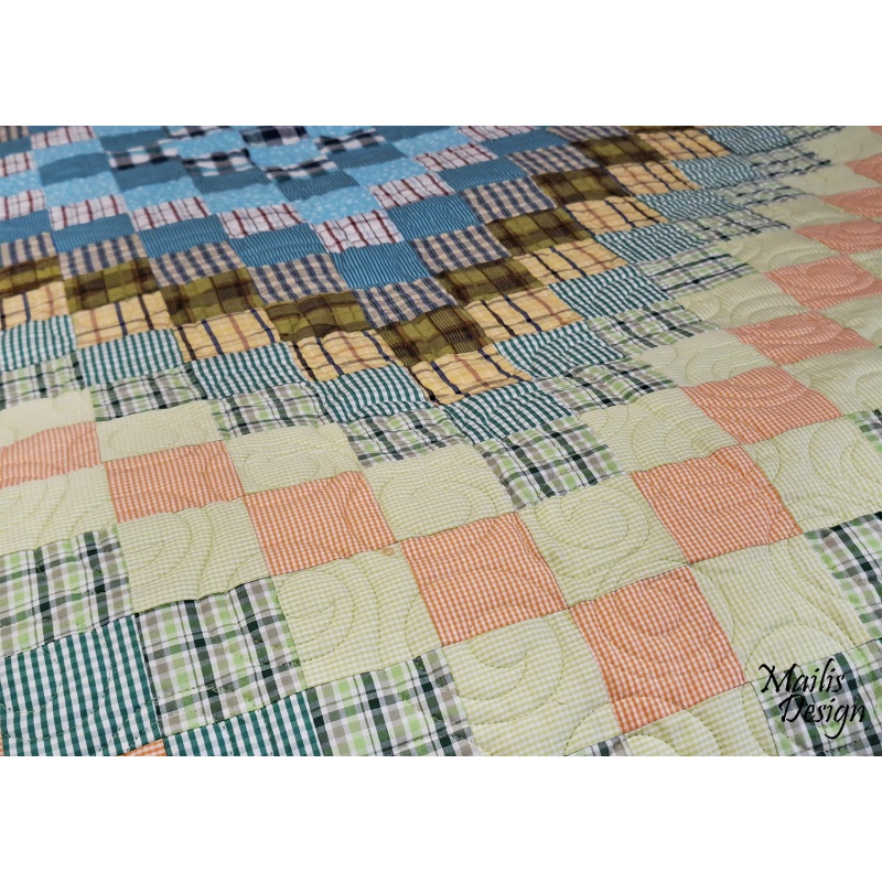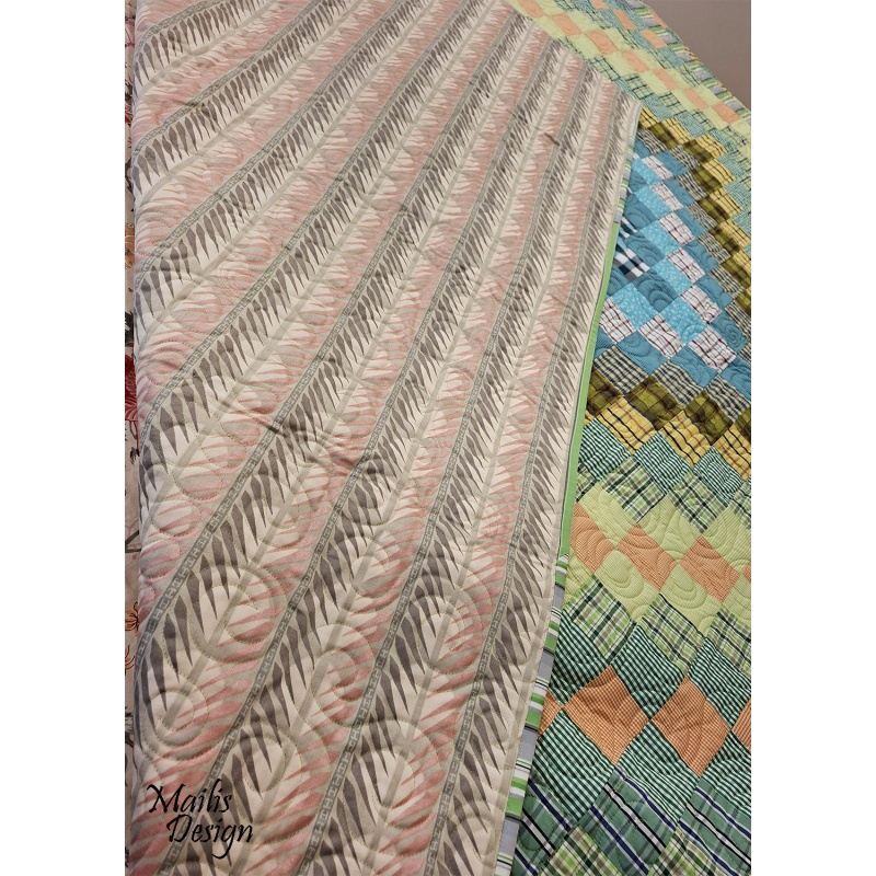 Lapitekk on õmmeldud pisikestest (8 x 8 cm) ruudukestest, triiksärkide tootmisjääkidest. Mustri nimi on Reis Ümber Maailma ning kuna selle teki valikus on eelkõige soojad ja suvised toonid, siis panin tekile nimeks SUVI.
