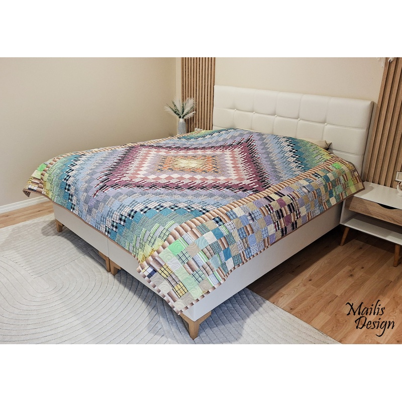 Sinistes ja kollastes toonides kangastest, merd ja randa meenutav lapitekk, päevatekk täiskasvanu voodile. Tore kingitus noorte tuppa.
