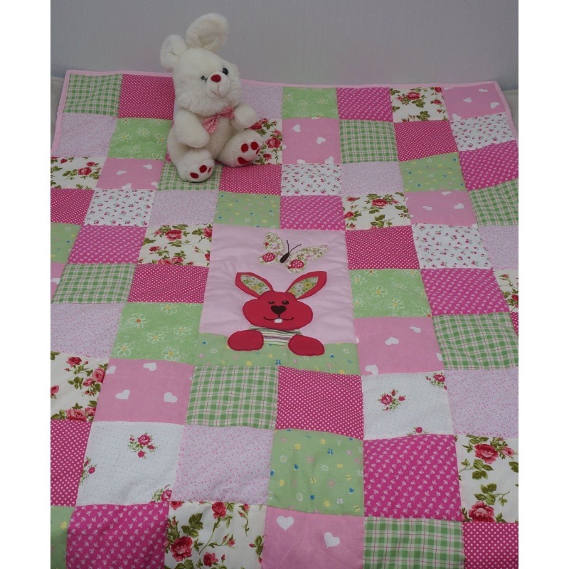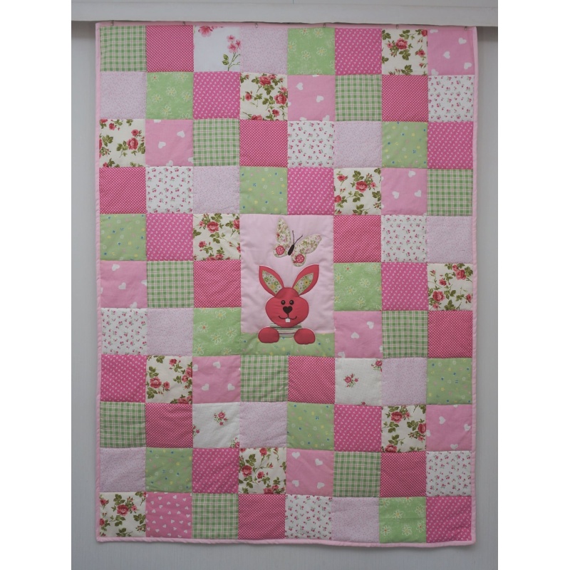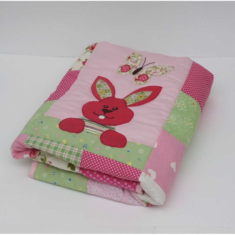 Roosa jänesega lapitekk lastele. Sobib pisut suuremate laste voodile ning on armas ning praktiline kingitus sünnipäevaks, jõuluks või koolilapseks saamise puhul.