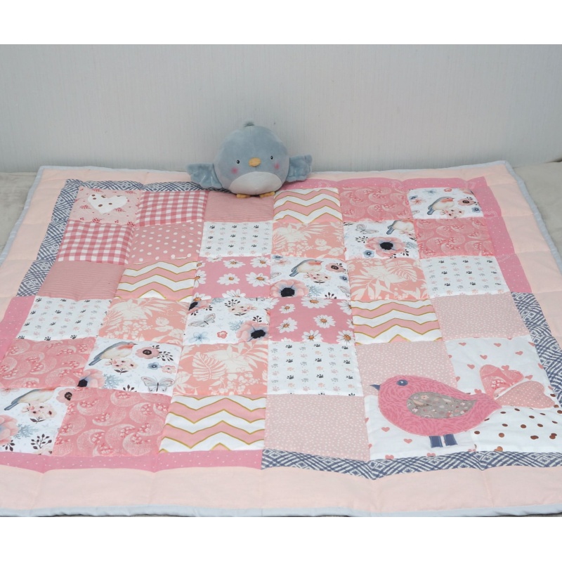 Linnubeebi lapitekk (100 x 100 cm), virsikuroosa