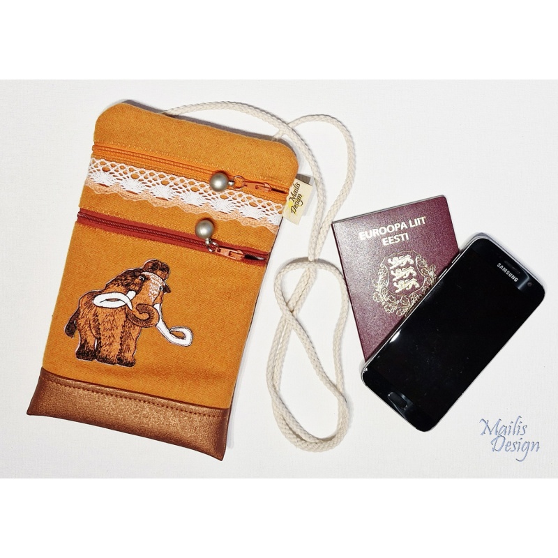 Mobiili- ja rahakott, 2 taskut ja nöör, oranž, mammut