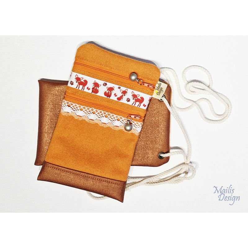 Mobiili- ja rahakott, 2 taskut ja nöör, oranž, rebased