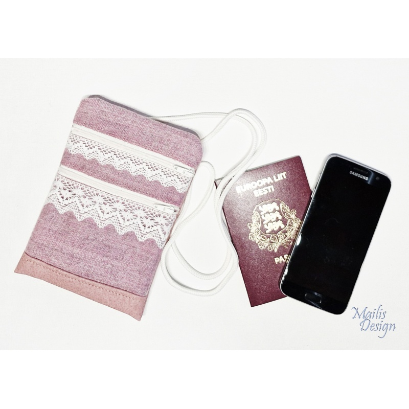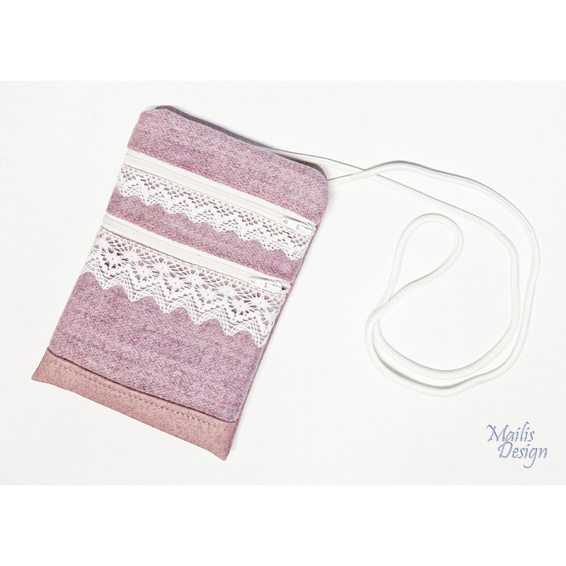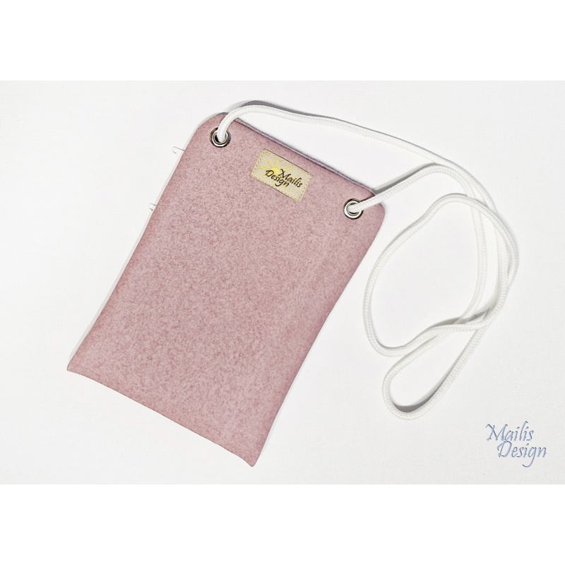 Mobiili- ja rahakott, 2 taskut ja nöör, tumeroosa