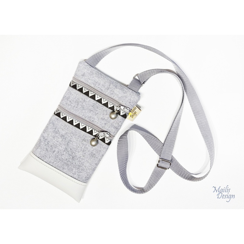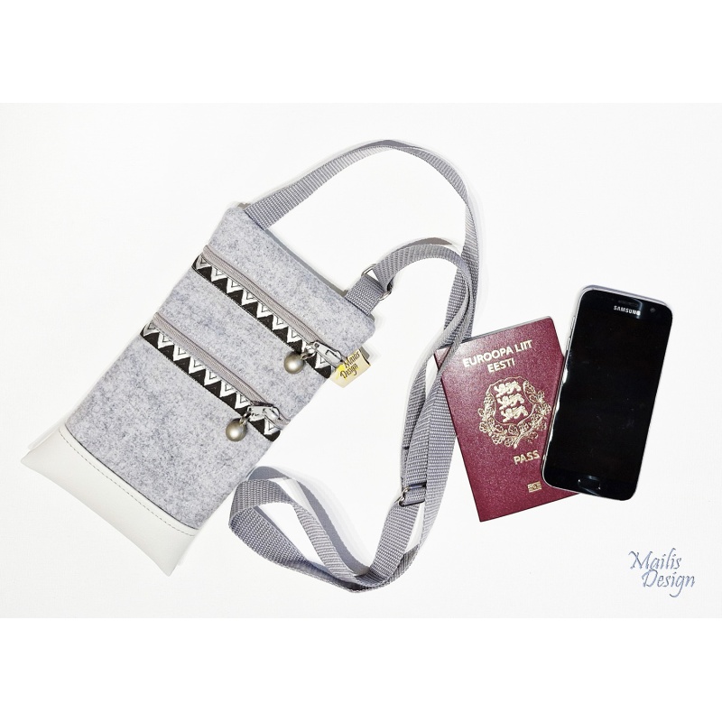 Mobiilikott/rahakott, 2 taskut, õlarihm, hall, dek.pael