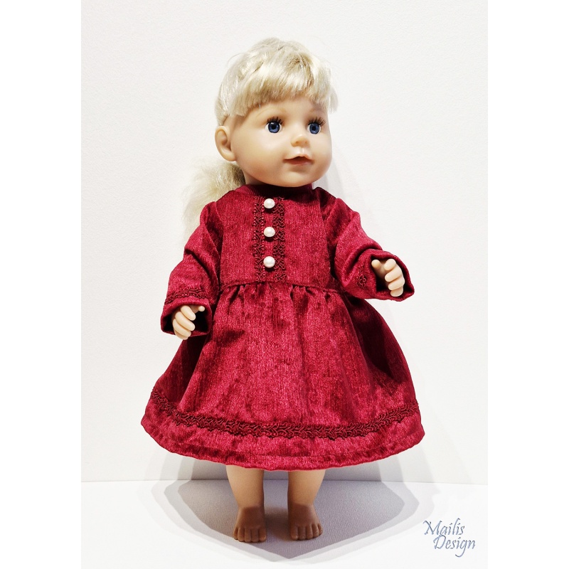 Käsitööna valminud nuku pidulik kleit, tumepunane, samet, pitsid, rinnal pärlid. Kleit sobib nukkudele pikkuses 43-48 cm (Baby Born, BB õde, nuku Lissi, Baby Annabel ja teistele sarnased).