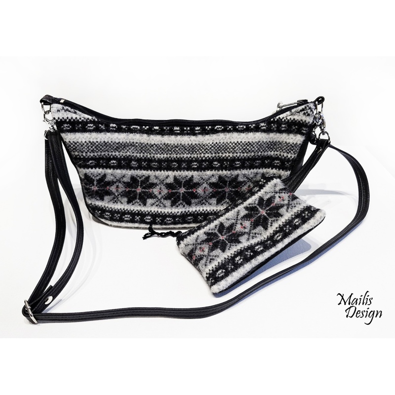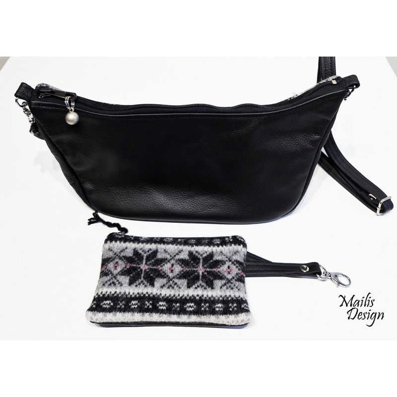 Materjal: naturaalne nahk (tootmisjäägid) ja villane kudum (rahvuslikus stiilis kampsun). Vooder voodrisiid.