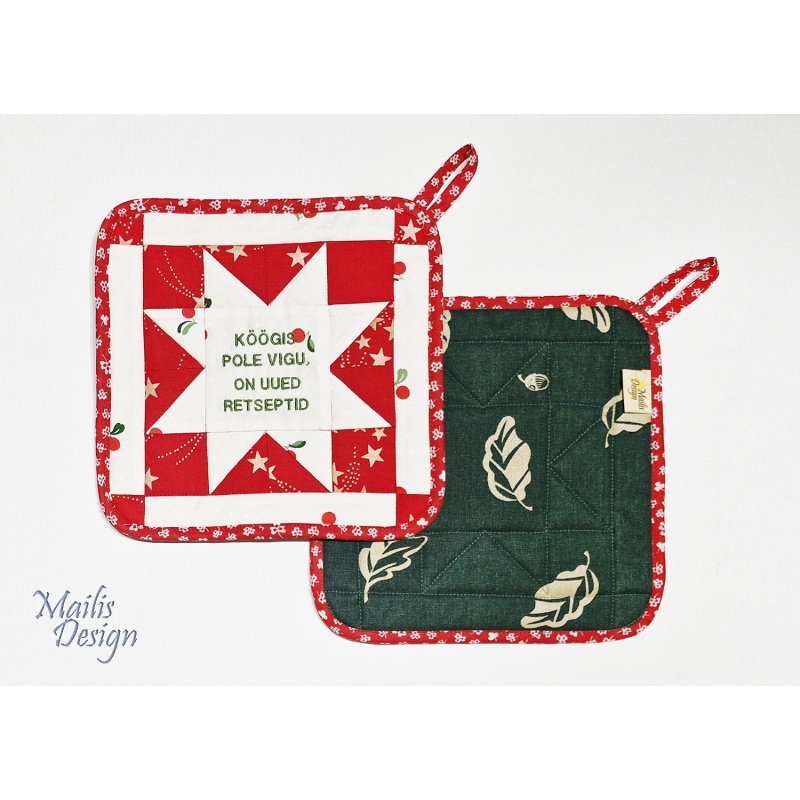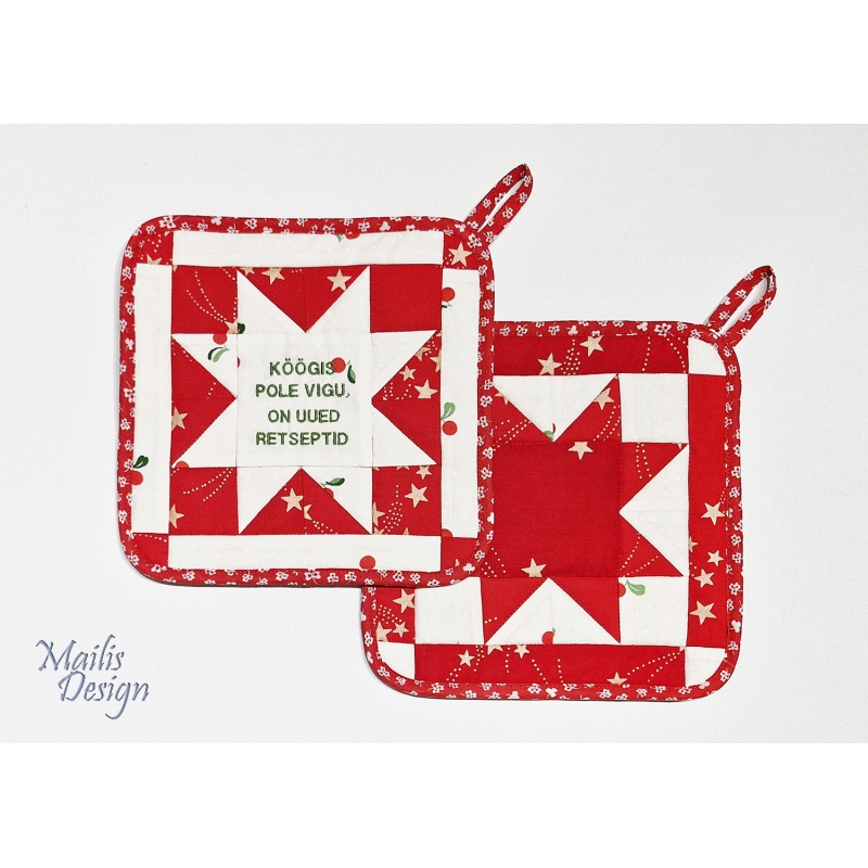 Käsitööna, lapitehnikas õmmeldud pajalapid on tore kingitus igasse kodusse. Loob pidulikku meeleolu nii talvel kui suvel.