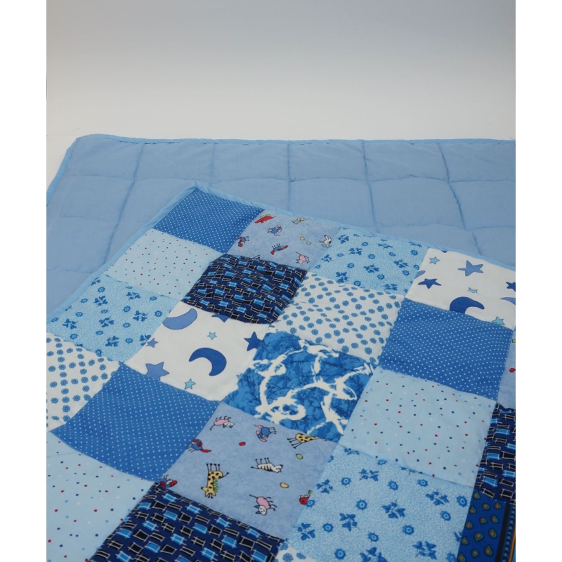 Materjal: puuvillased kangad, krõbisevad materjalid detailide sees, erineva tekstuuriga kangad. Kangad on läbi pestud. Rohked tepingud hoiavad teki ka peale pesu vormis. Täiteks mahuline vatiin (polüester).