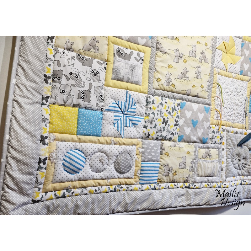 Lõbusad ja lastepärased, erineva tekstuuriga kangastest pildid on abiks lapsele näpuosavuse ning silmade ja käe koostöö arendamiseks: krõbisevad detailid, värvilised paelad, võrk-kangast taskud jmt.